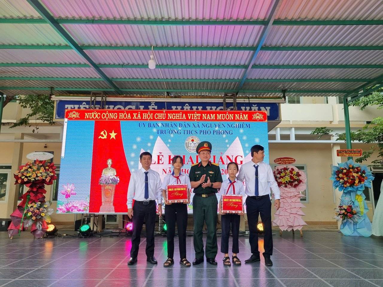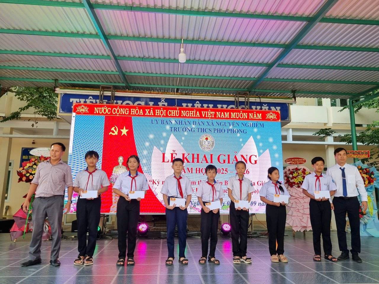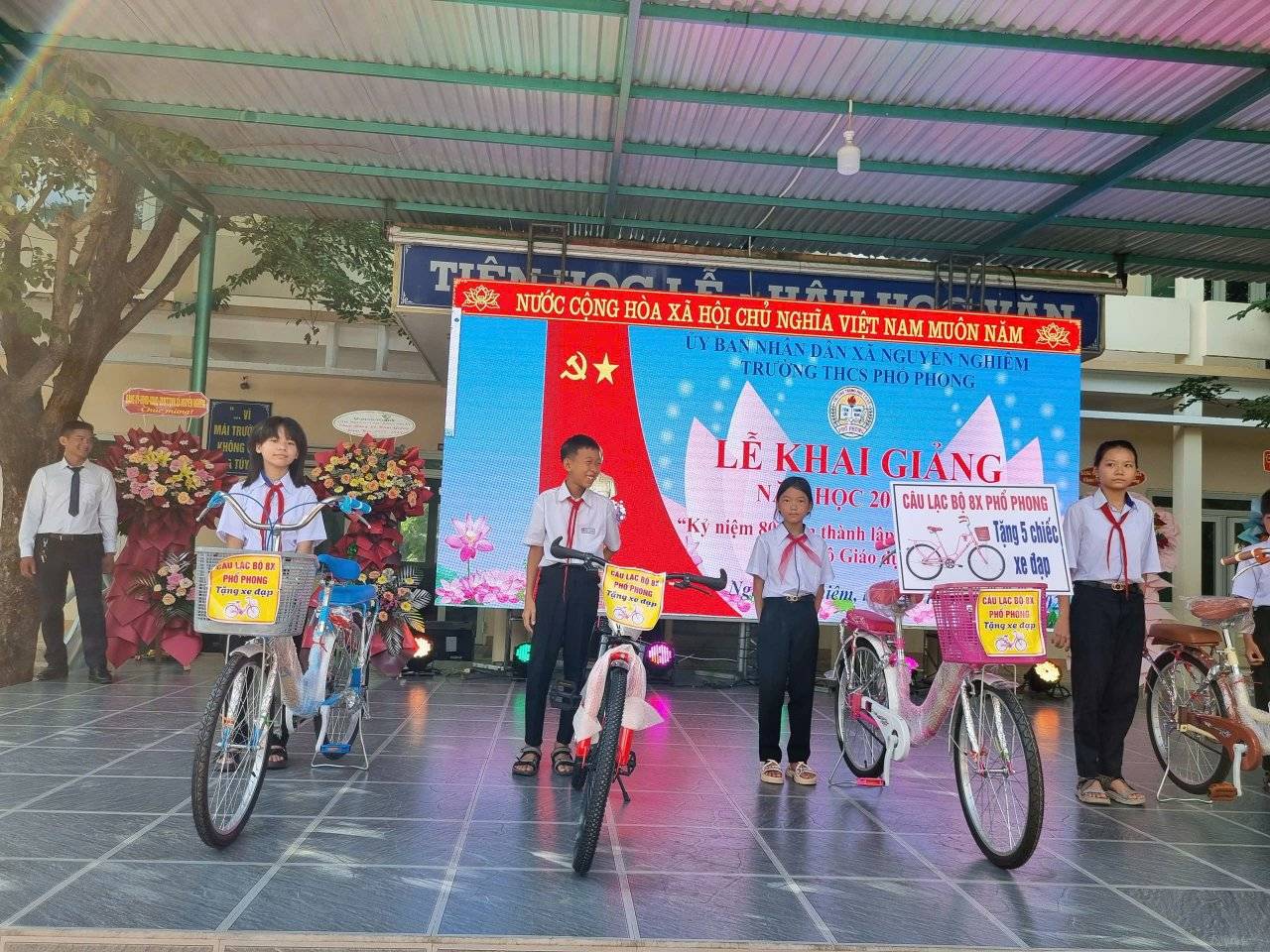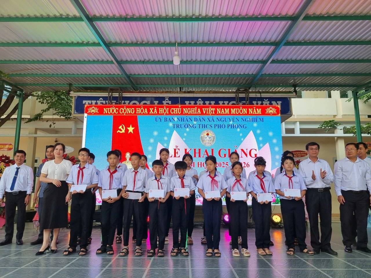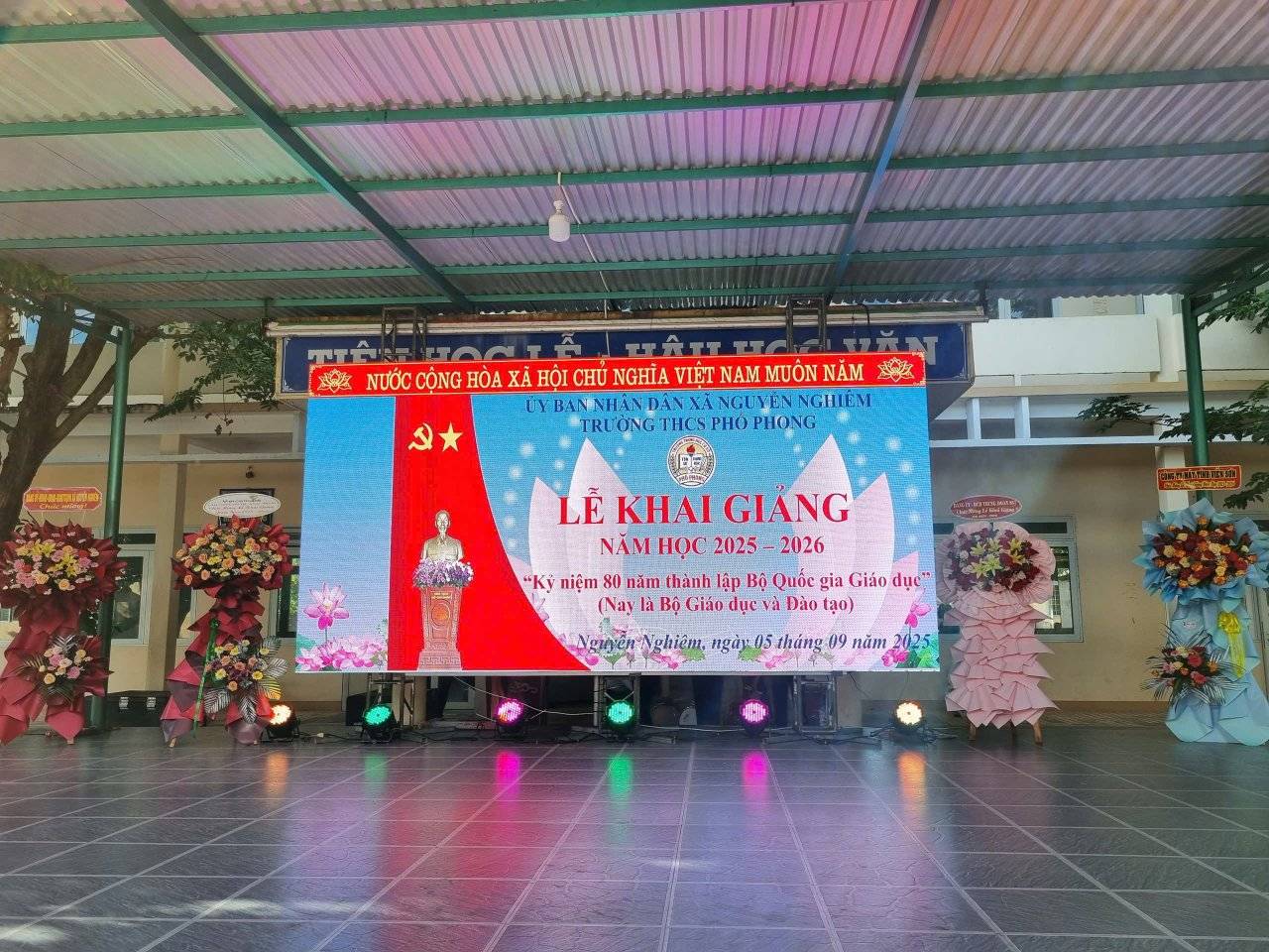 Sáng ngày 05/09/2025, trong không khí se lạnh của những ngày đầu thu, trường THCS Phổ Phong đã long trọng tổ chức lễ khai giảng năm học 2025-2026. Cùng kỉ niệm 80 năm thành lập Bộ giáo dục và đạo tạo. Buổi lễ diễn ra trang nghiêm, xúc động với sự tham dự của các ban ngành, toàn thể cán bộ, giáo viên, nhân viên, cùng các bậc phụ huynh và hơn 500 em học sinh.