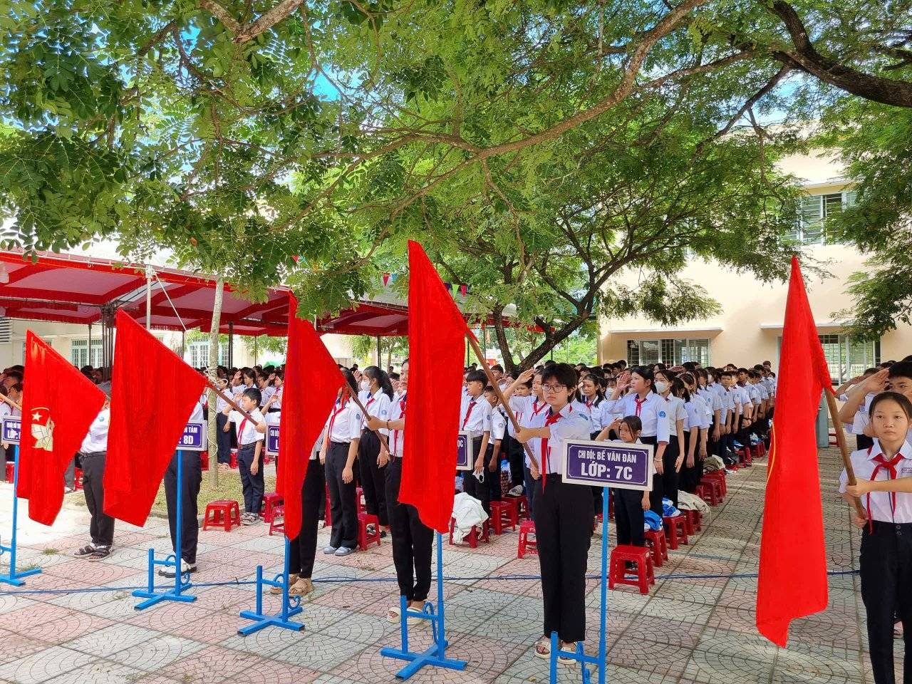 Mở đầu buổi lễ là nghi thức đón học sinh lớp 6, những gương mặt non nớt nhưng đầy háo hức, chính thức gia nhập ngôi nhà chung THCS Phổ Phong. Thầy và trò nhà trường đã dành những tràng pháo tay nồng nhiệt để chào đón các em, đồng hành cùng các em trên con đường đi tìm tri thức.