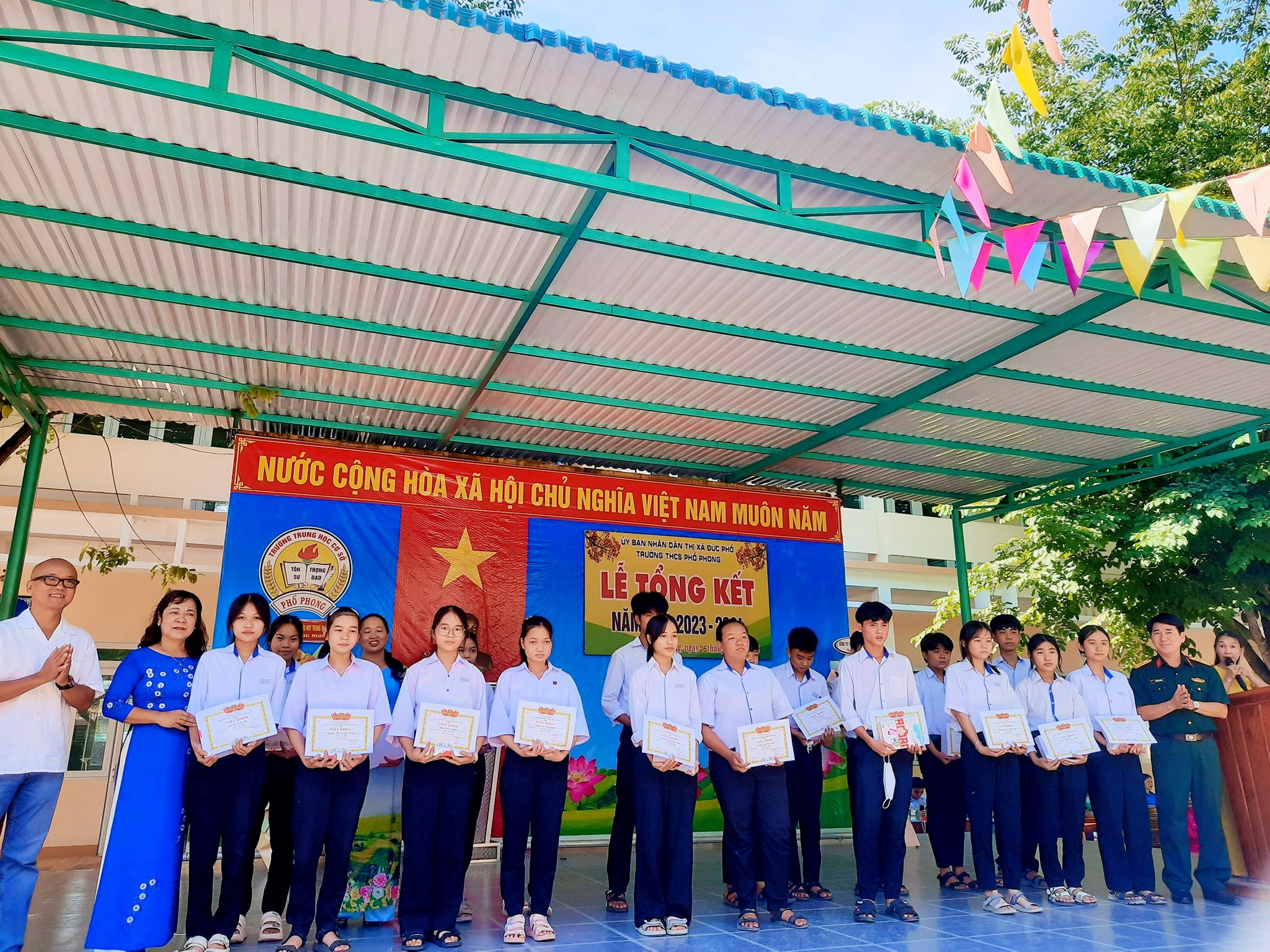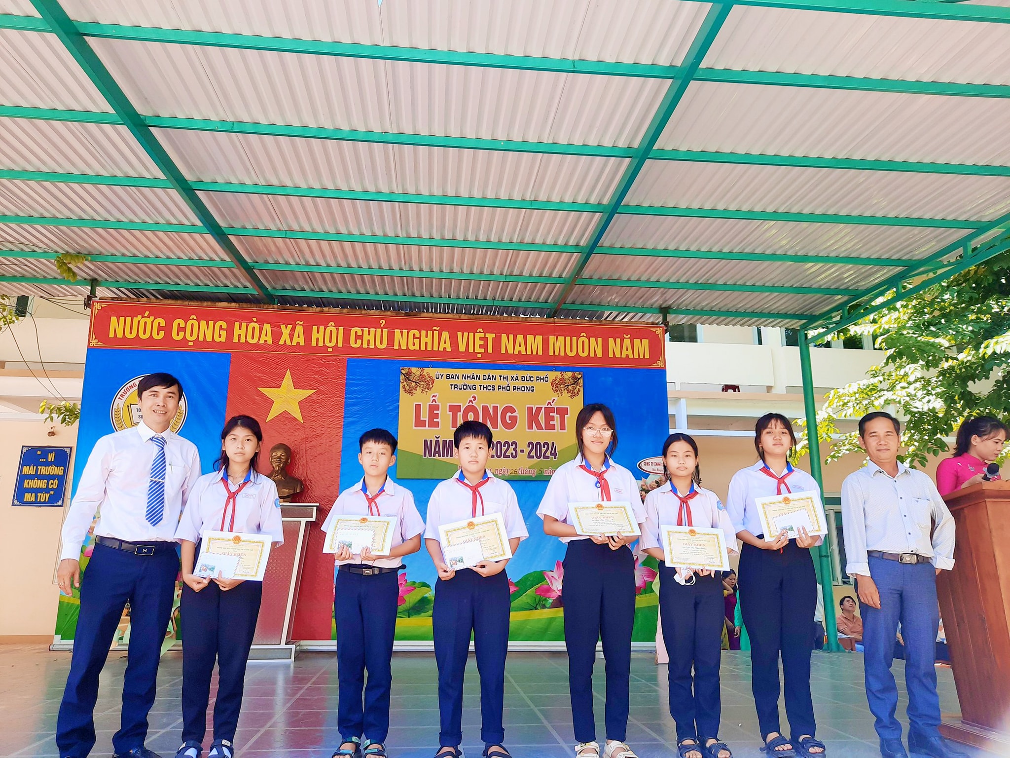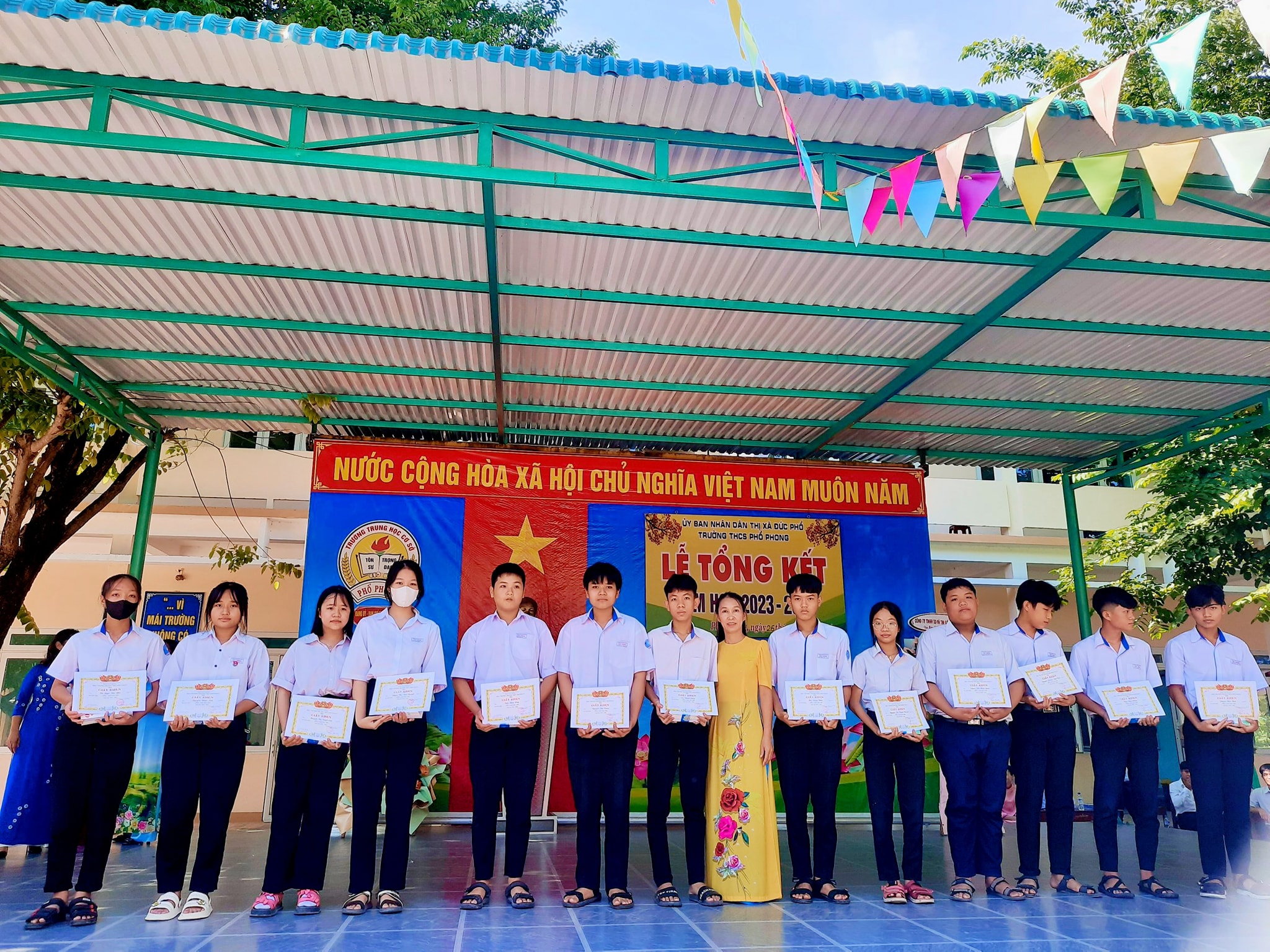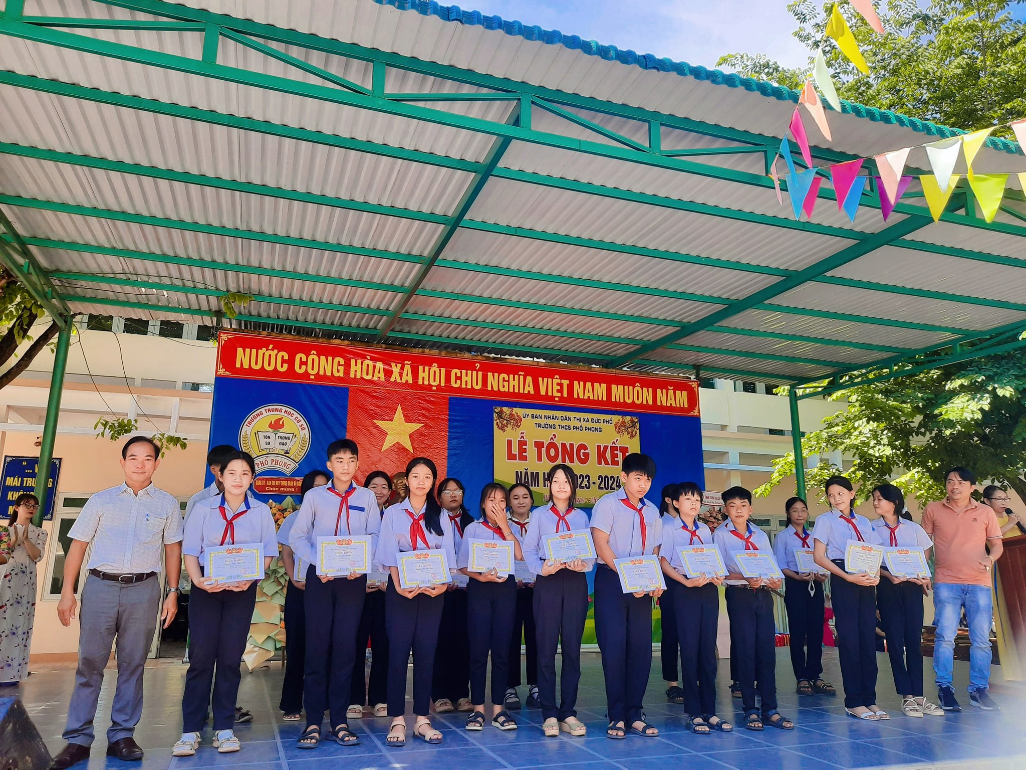 Sáng nay ngày 26.5, thầy và trò trường THCS Phổ Phong tổng kết lại một năm học cùng nhau cố gắng và những thành tích đã đạt được trong năm nay.