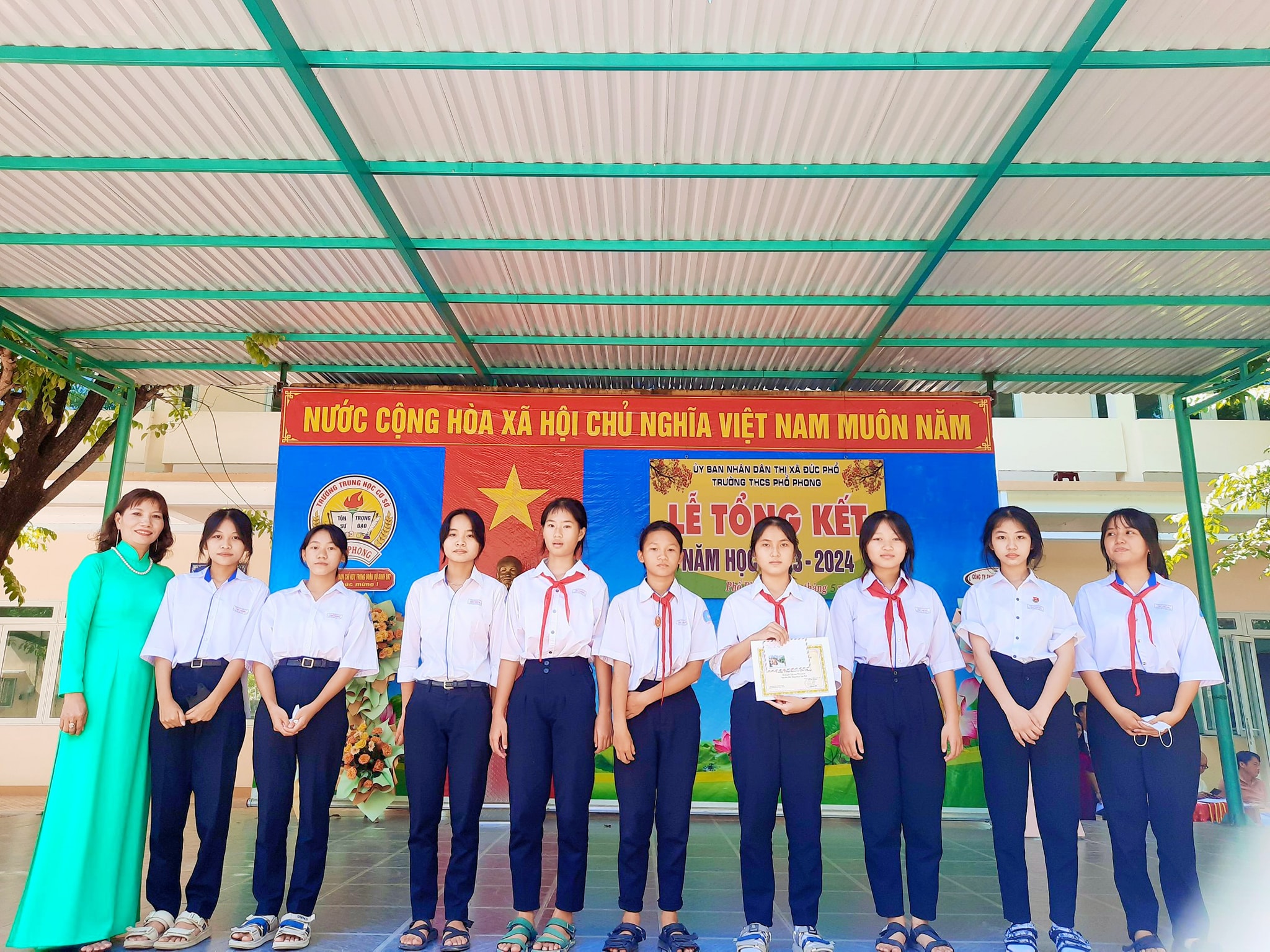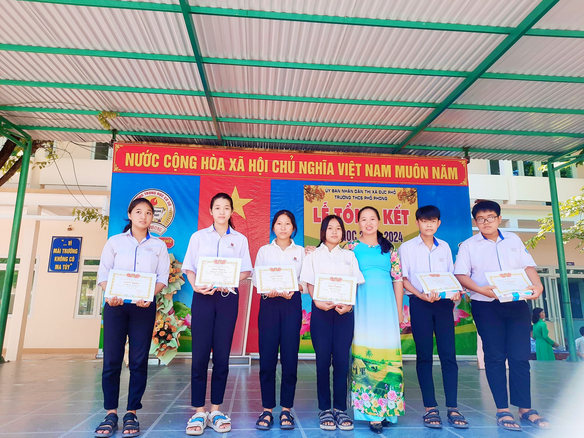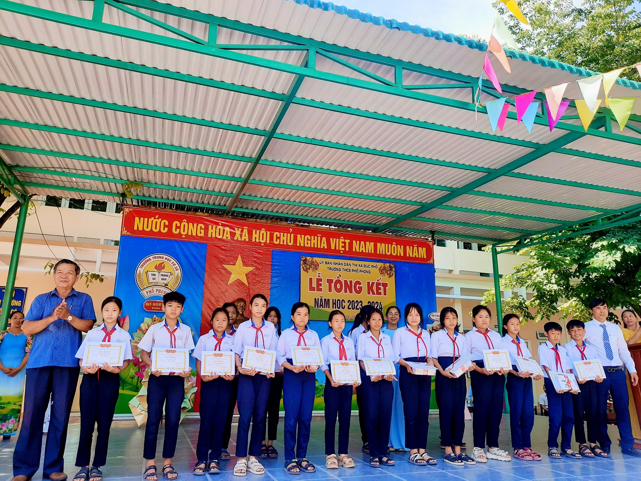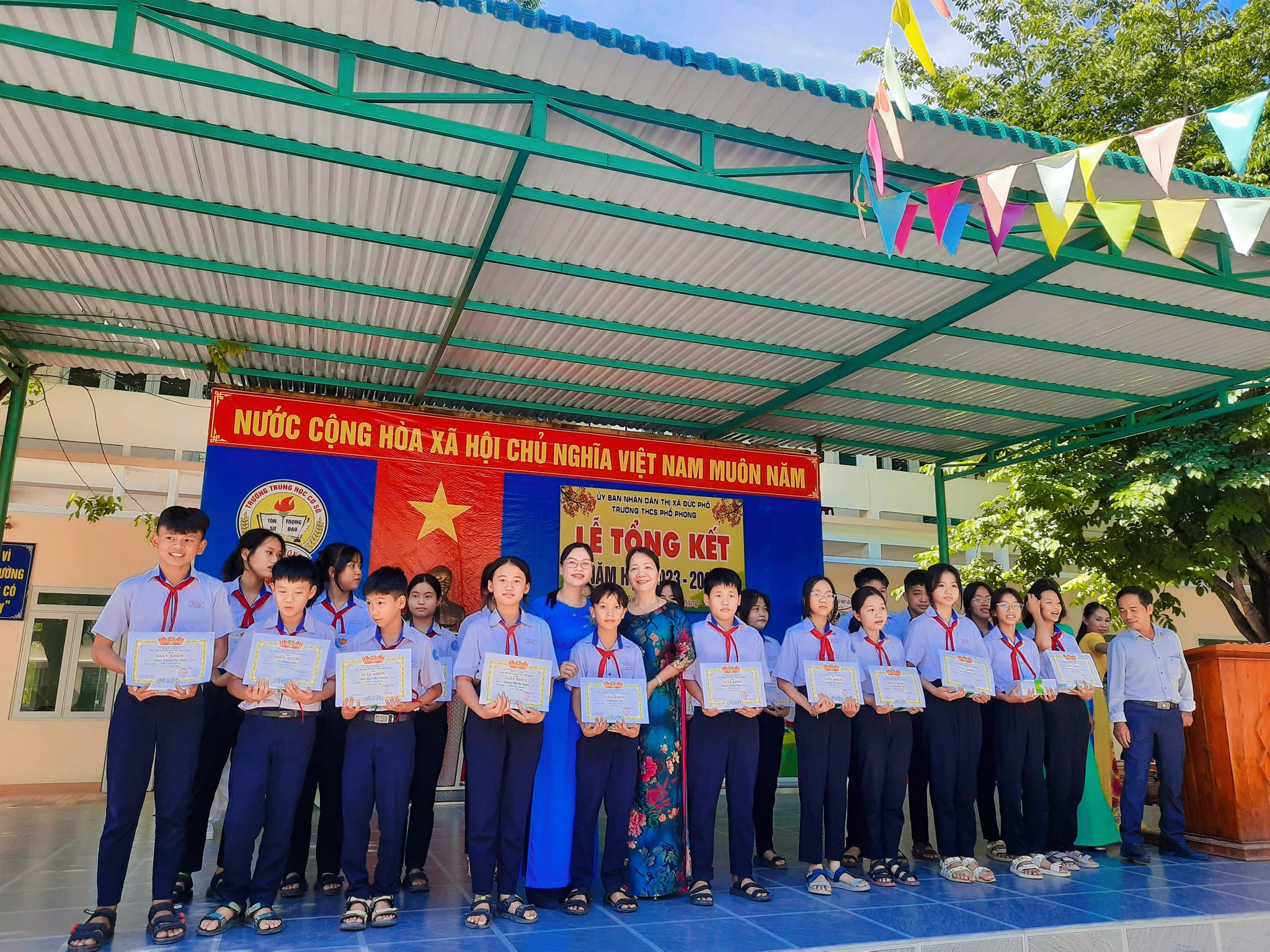 Sáng nay ngày 26.5, thầy và trò trường THCS Phổ Phong tổng kết lại một năm học cùng nhau cố gắng và những thành tích đã đạt được trong năm nay.
