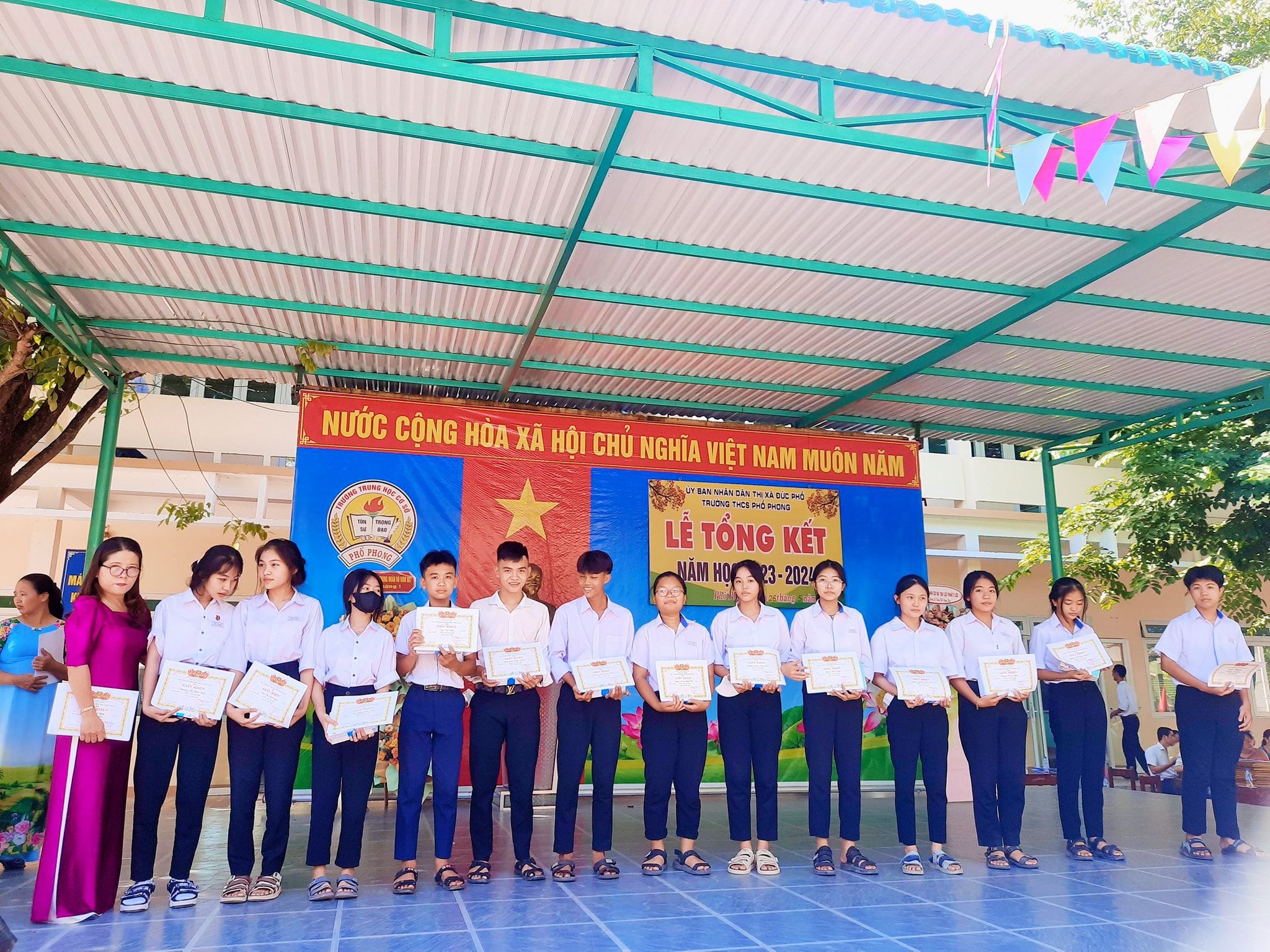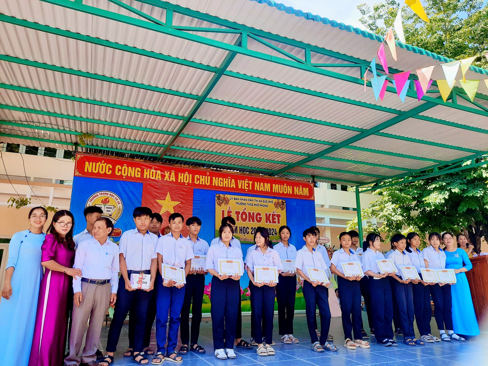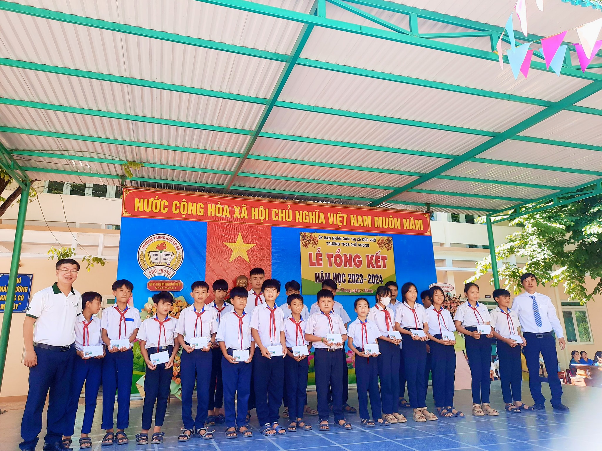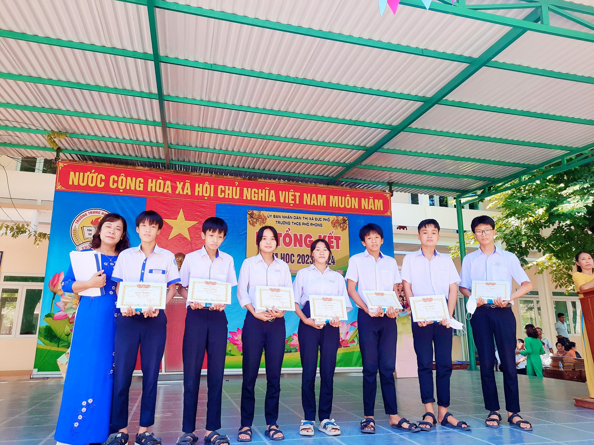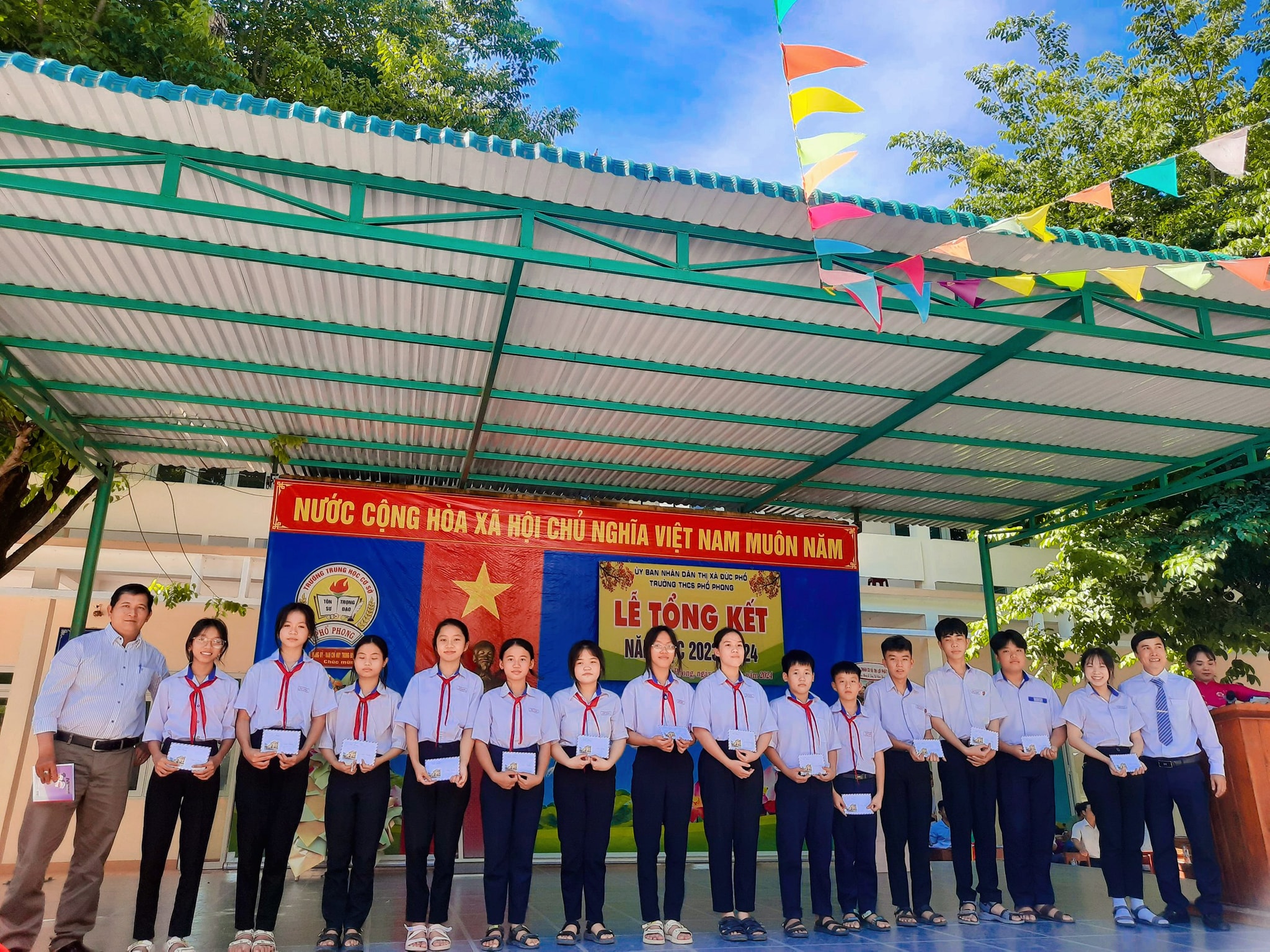 Sáng nay ngày 26.5, thầy và trò trường THCS Phổ Phong tổng kết lại một năm học cùng nhau cố gắng và những thành tích đã đạt được trong năm nay.