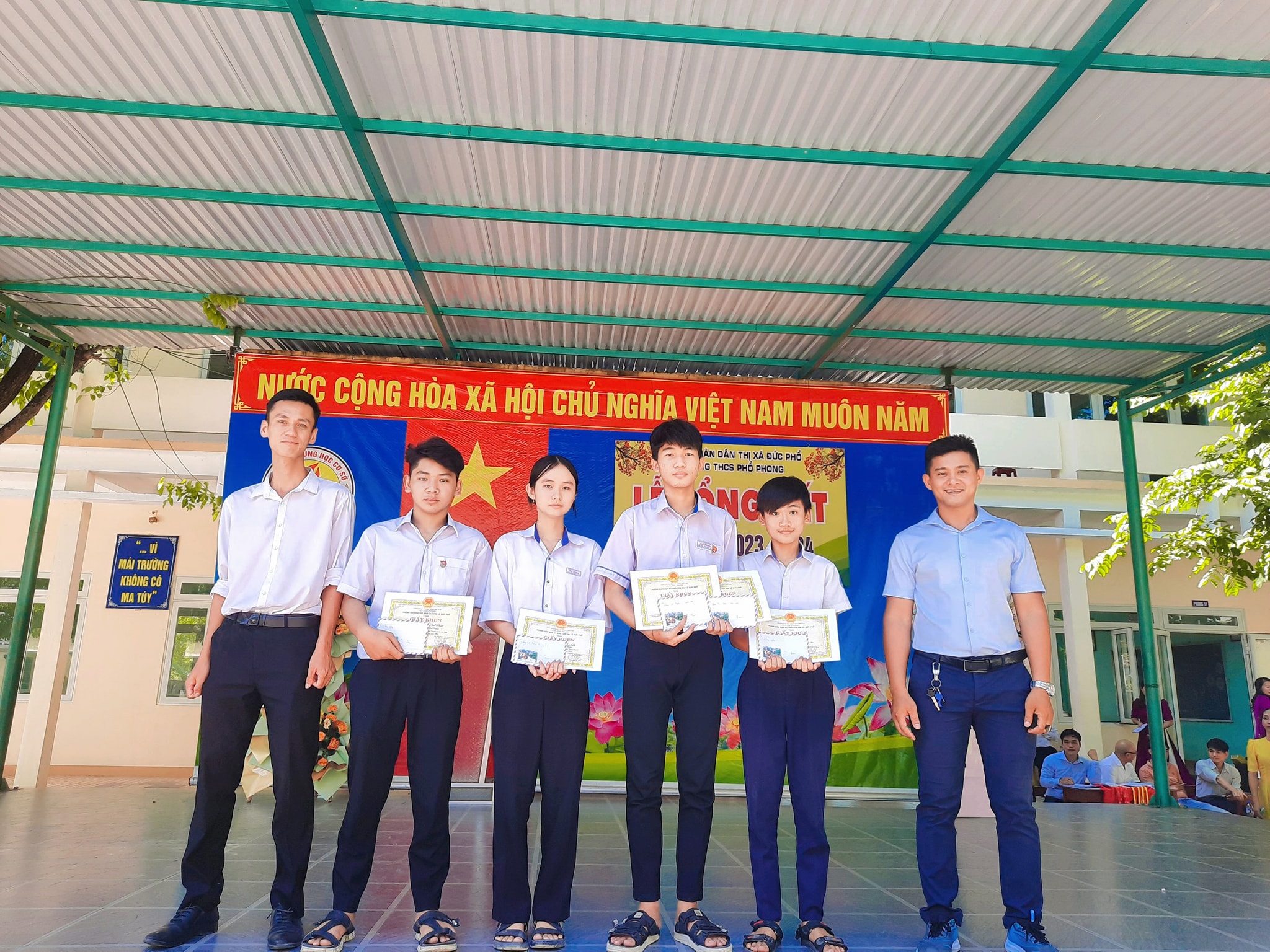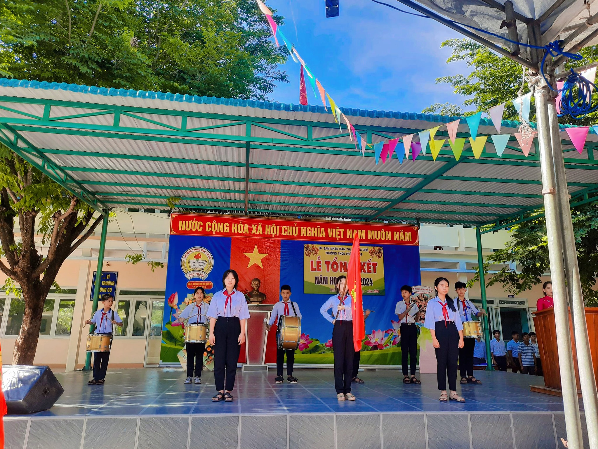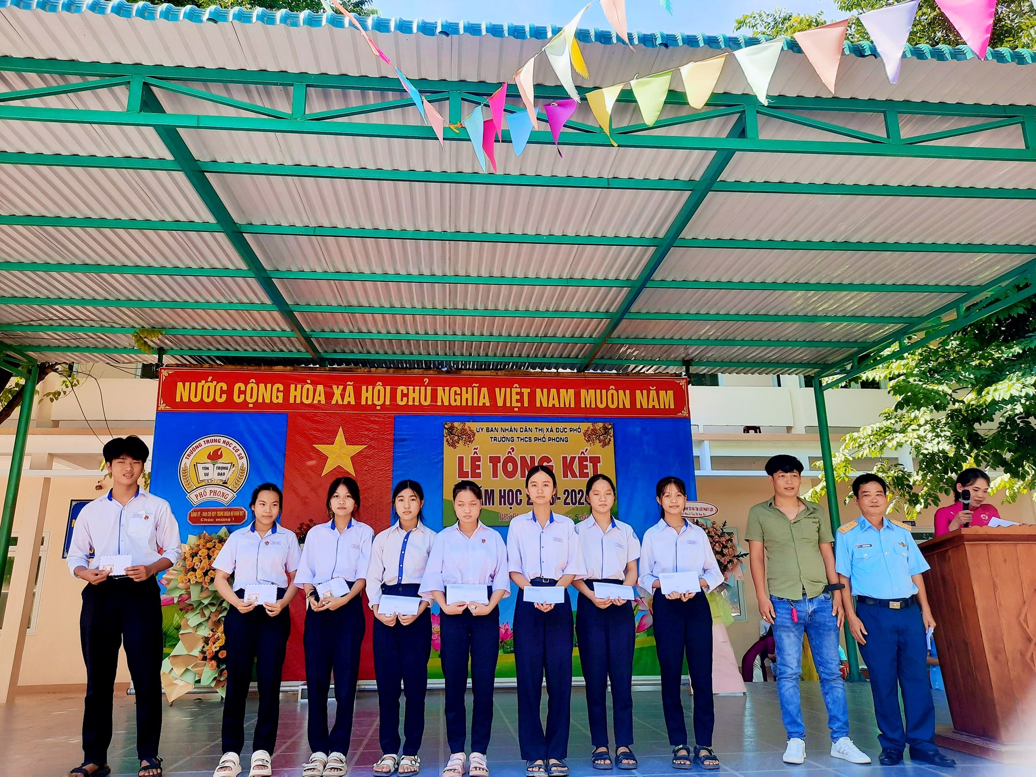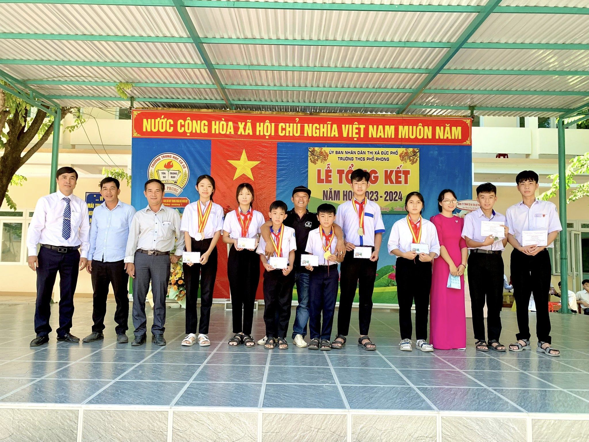 Sáng nay ngày 26.5, thầy và trò trường THCS Phổ Phong tổng kết lại một năm học cùng nhau cố gắng và những thành tích đã đạt được trong năm nay.